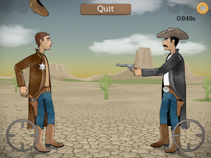 Two player reaction game set in the Old West. Challenge your mates to a friendly duel!
