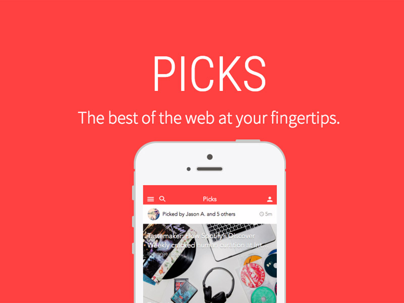 With Picks app you can discover, save and share great stories with friends. We are developing the iOS version.